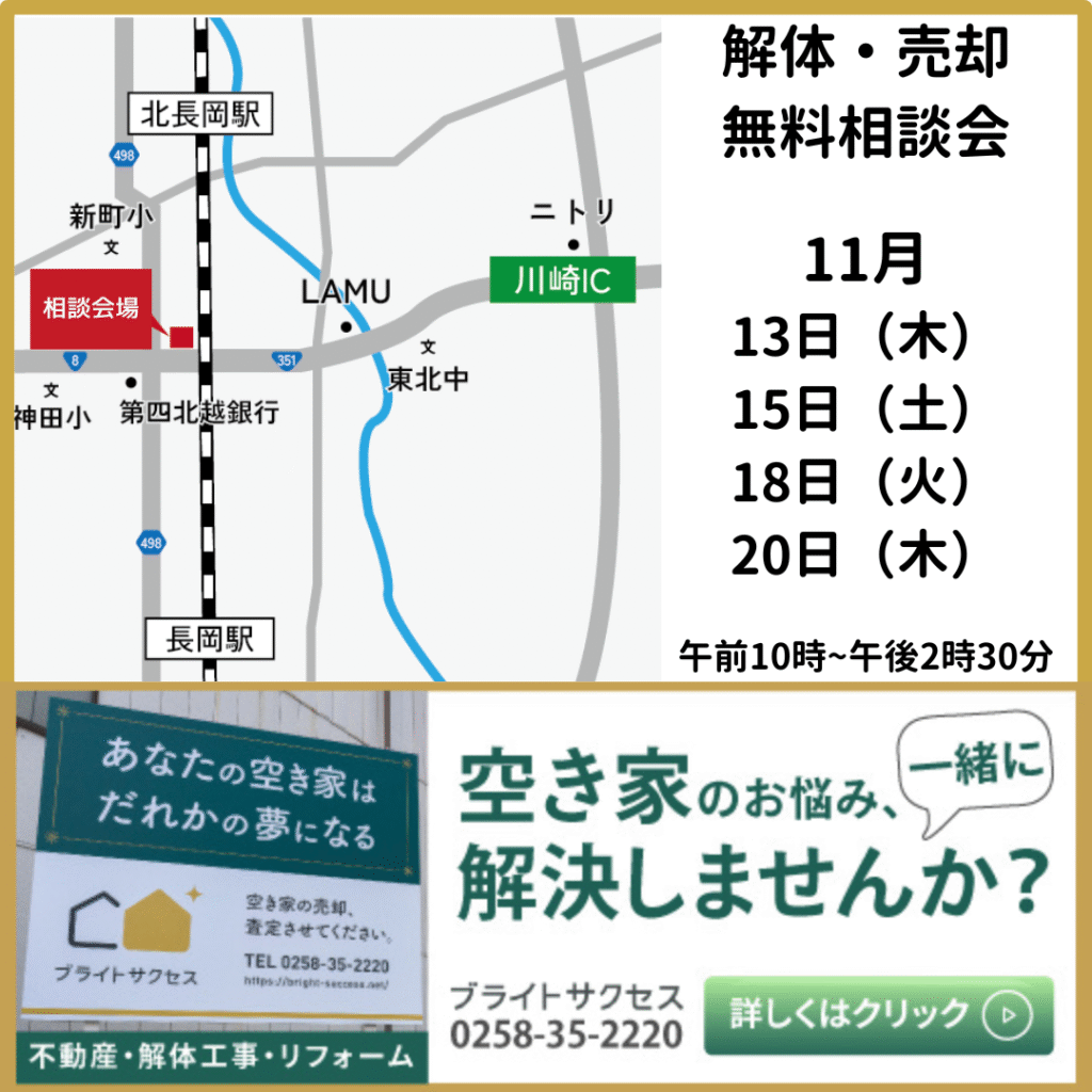 11月は以下の日程で開催され、専門家が皆さまの空き家に関するご相談に無料でお応えします。